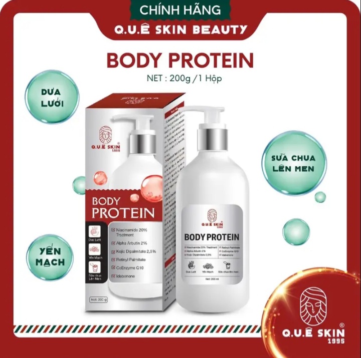🐳 Kem body Protein ( 200g ) là sản phẩm dưỡng da toàn thân với thành phần chiết xuất từ sữa chua lên men, dưa lưới và yến mạch. Sản phẩm giúp cung cấp Protein cho da, giúp da khỏe hơn. Ngoài ra, sản phẩm còn giúp dưỡng ẩm và làm mềm da, giúp da trở nên mịn màng